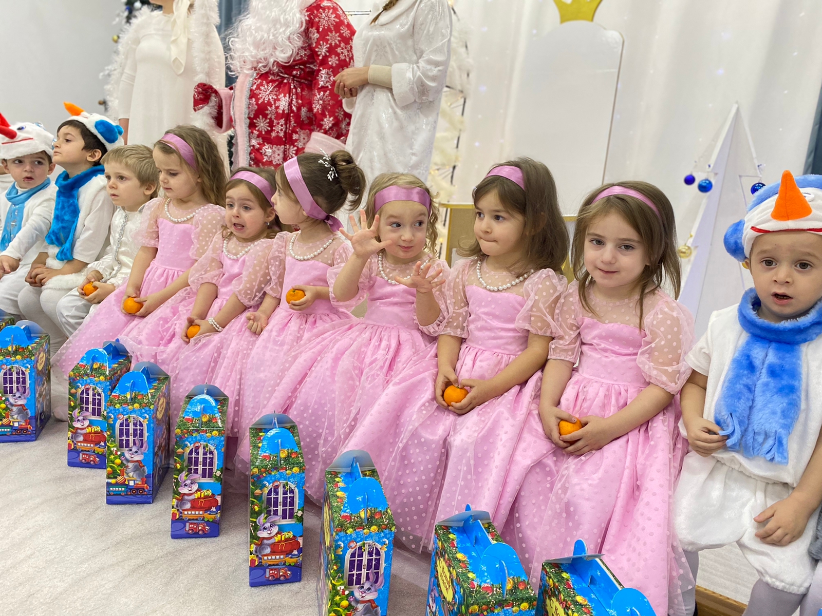 Все дети с удовольствием проявляли свои таланты: танцевали, рассказывали стихи, пели песни, играли. Никто не остался равнодушен. Море радости и эмоций вызвали подарки, врученные детям из рук самого Дедушки Мороза! Праздник получился очень весёлый, радостный и оставил много приятных впечатлений и эмоций у всех.